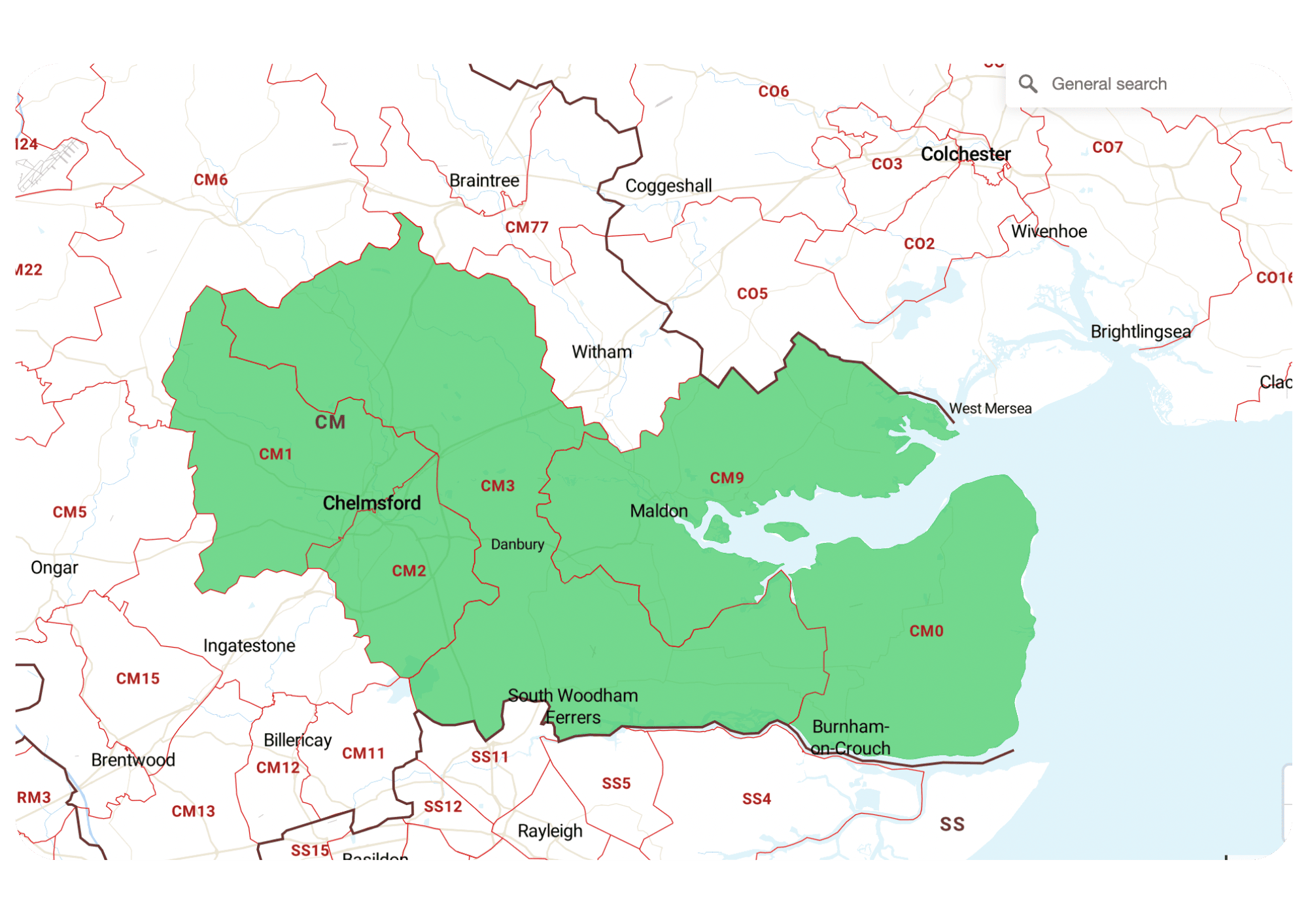 AsheldhamBaddow ParkBurnham-on-crouchChelmsfordCold NortonGalleywoodGreat BaddowHeybridgeHowe GreenMaldonMaylandseaNorth FambridgeSandonSouth Woodham FerrersSouthminsterTillinghamTollesburyWithamWrittle